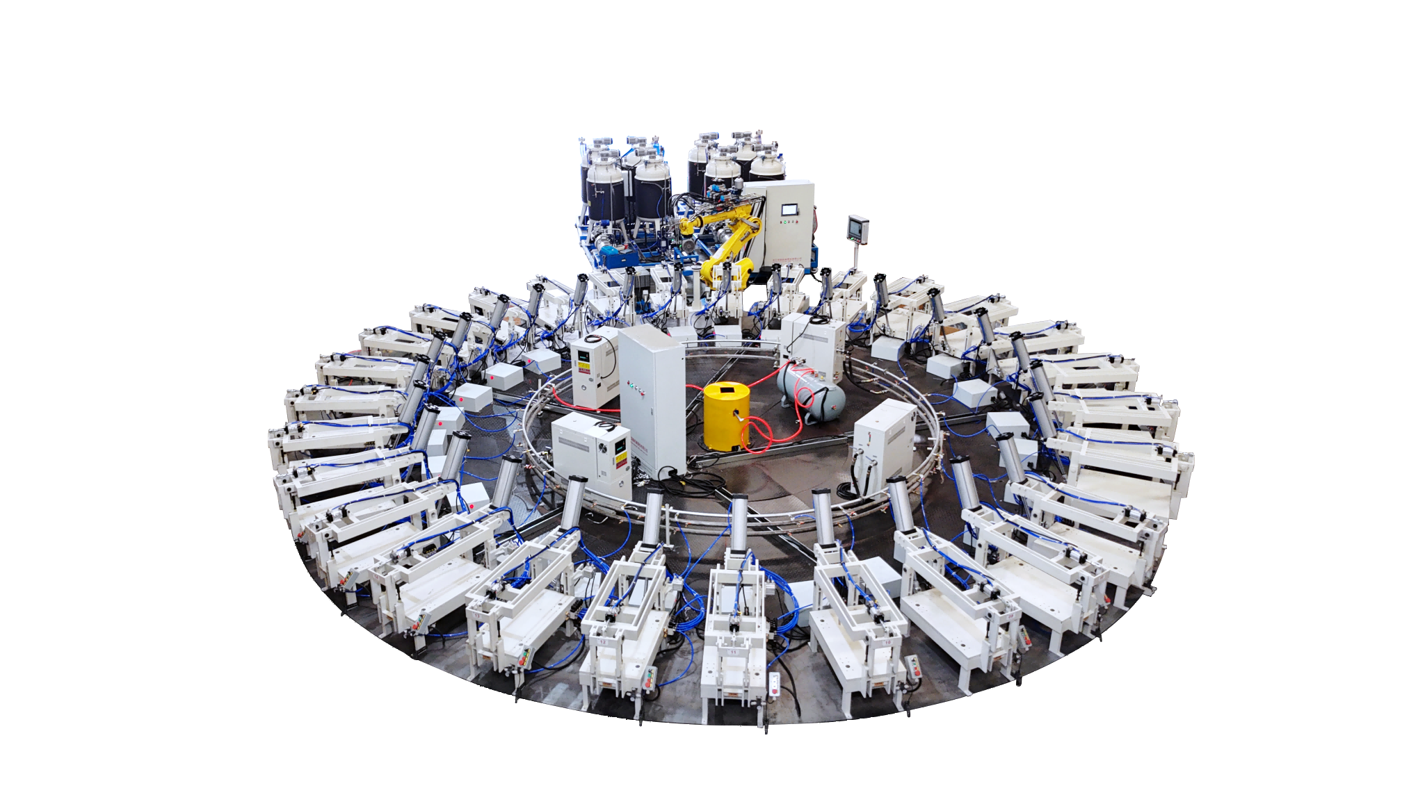 領新機械公司成立近二十年,是一家擁有十幾項專利,集聚氨酯澆注設備、相關自動生產線、配套設施及生產工藝技術支持為一體的綜合性服務商,即“聚氨酯整體方案服務商”。